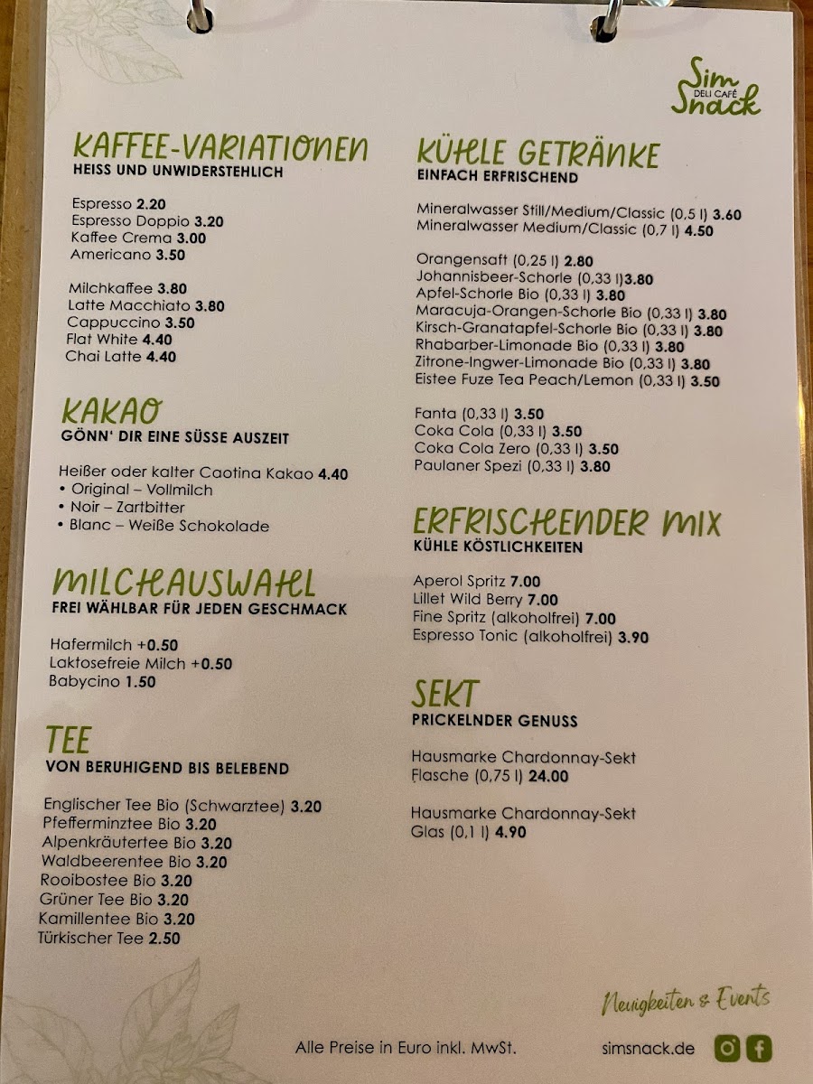 Welcome to SimSnack Deli Café, a delightful culinary haven nestled in the charming town of Haslach im Kinzigtal. Here, you'll discover a menu that offers a harmonious blend of fresh, flavorful dishes and refreshing beverages.